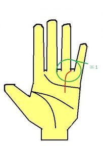 太陽線が小指の方へと曲がるのが特徴です。