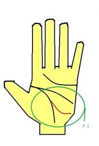 旅行線のように生命線から出て、線の末端が平行に伸びるのが特徴です。